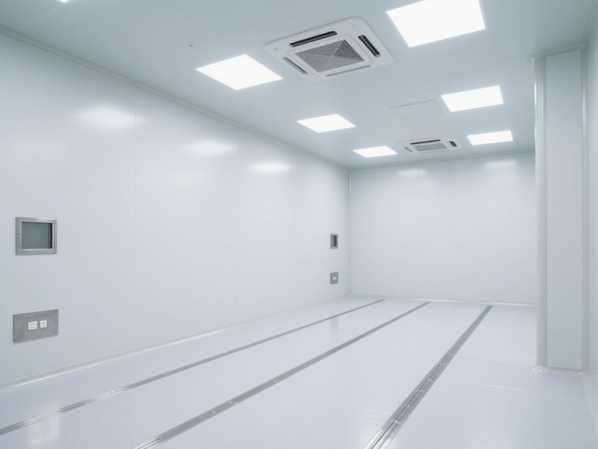 精準還原電子行業潔凈空間,白灰主色調貫穿整體,風格簡約專業且質感統一。淺白墻面搭配淺灰地面、金屬色設備接口線條,既符合電子車間低塵、抗靜電的核心需求,又通過色調層次避免空間單調,視覺上凸顯潔凈通透的特質。?