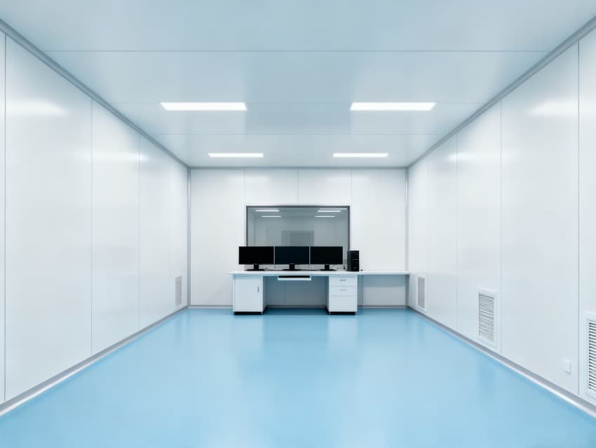 車間環(huán)境控制優(yōu)勢(shì)顯著:地面采用淺藍(lán)色防靜電環(huán)氧材質(zhì),有效規(guī)避靜電對(duì)量子元件的干擾;四周白色抗菌墻面經(jīng)特殊涂層處理,粉塵附著率低于0.1%,配合全密封吊頂設(shè)計(jì),可維持千級(jí)潔凈度,滿足量子器件對(duì)微環(huán)境的極高要求。?