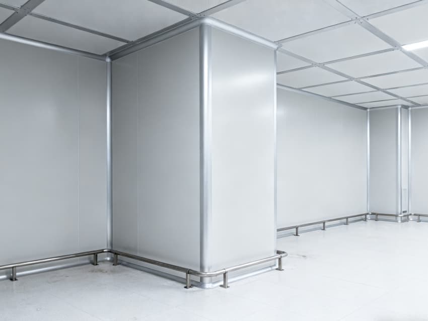 內(nèi)部按功能劃分為六大核心區(qū)域:潔凈生產(chǎn)區(qū)采用無(wú)設(shè)備空曠布局,預(yù)留8-12米柱距滿(mǎn)足光刻機(jī)、刻蝕機(jī)等大型設(shè)備安裝需求;管線(xiàn)集成區(qū)通過(guò)規(guī)整的頂部管線(xiàn)橋架系統(tǒng),實(shí)現(xiàn)水、電、氣、真空系統(tǒng)集中管控,減少管線(xiàn)交叉干擾;潔凈緩沖區(qū)設(shè)置于生產(chǎn)區(qū)入口,搭配墻面通風(fēng)口保障潔凈度過(guò)渡;設(shè)備預(yù)留區(qū)保留開(kāi)闊橫向空間,支持后期工藝動(dòng)線(xiàn)調(diào)整;結(jié)構(gòu)輔助區(qū)通過(guò)角落加固設(shè)計(jì),滿(mǎn)足重型設(shè)備承重需求;墻面潔凈區(qū)采用光滑防污材質(zhì),降低粉塵附著率。整體空間兼顧半導(dǎo)體生產(chǎn)的潔凈標(biāo)準(zhǔn)與功能靈活性,適配合肥半導(dǎo)體產(chǎn)業(yè)發(fā)展需求。