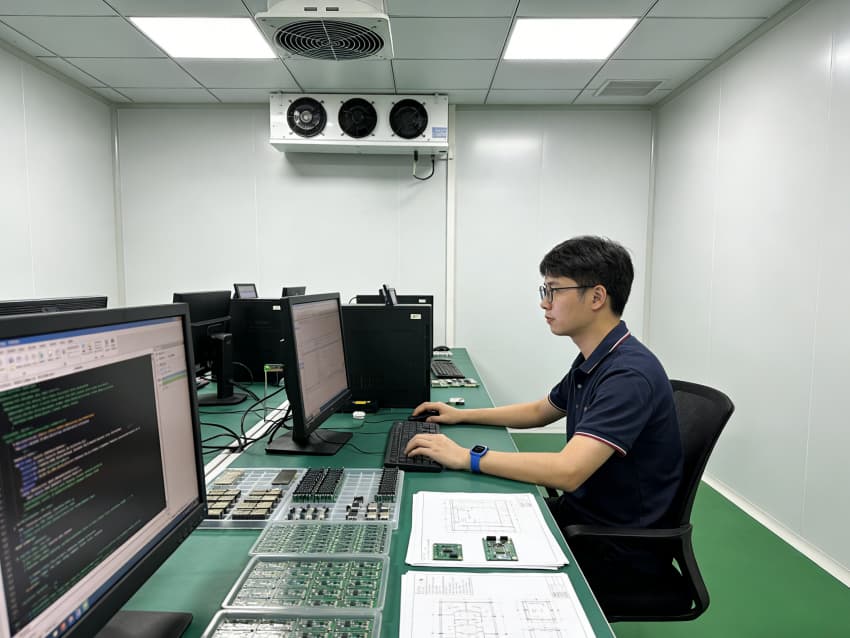 電路板制造車間內(nèi)部采用綠色地面與白色墻壁的簡約統(tǒng)一風(fēng)格,精準(zhǔn)適配電路板生產(chǎn)對防靜電、高潔凈的嚴(yán)苛要求。綠色地面選用防靜電抗菌環(huán)氧自流平材質(zhì),經(jīng)基層強化、精準(zhǔn)找平、防靜電涂層等多道工序施工,表面平整無縫,兼具強殺菌特性,可耐受高頻次清潔與消毒作業(yè),杜絕微生物滋生,同時防靜電性能穩(wěn)定,有效規(guī)避靜電對電子元件的損傷。