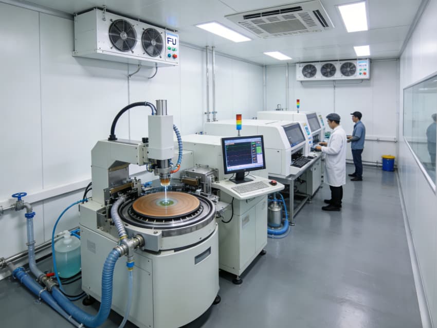 集成電路制造廠房內部采用灰色地面與白色墻壁的簡約科技風格,嚴格契合半導體行業Class 6級潔凈標準,精準匹配芯片制造對微塵、靜電、溫濕度的極致嚴苛要求。灰色地面選用防靜電高耐磨環氧自流平材質,經基層固化、激光找平、防靜電涂層等多道精密工序,表面平整度誤差≤0.5mm/m,防靜電性能穩定在10?-10?Ω,可耐受高頻次清潔消殺與精密設備碾壓,同時具備強抗化學腐蝕特性,適配光刻膠、蝕刻液等特種物料防護。