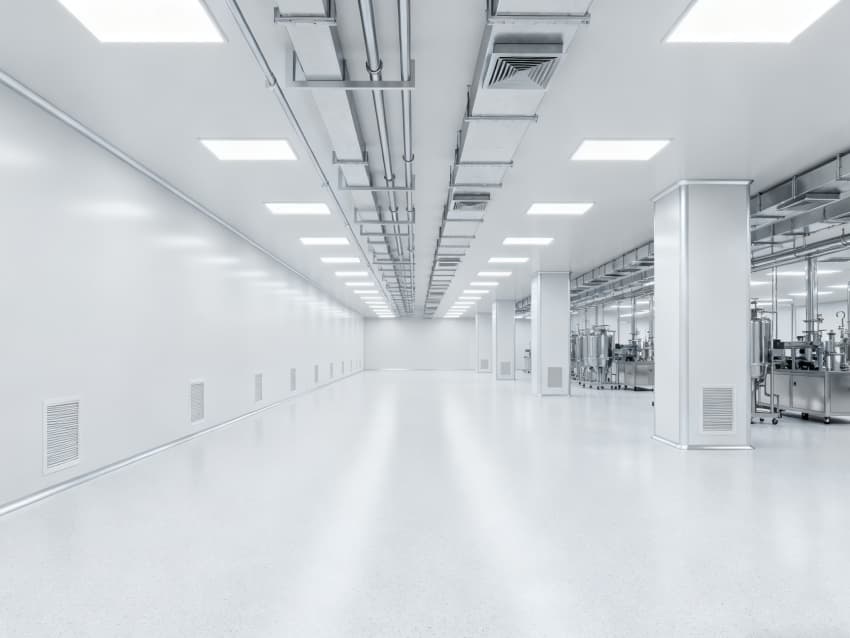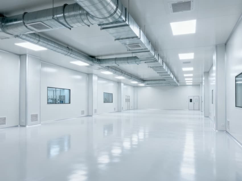 內(nèi)部6個(gè)核心生產(chǎn)車間均為無(wú)設(shè)備空曠布局,按萬(wàn)級(jí)潔凈標(biāo)準(zhǔn)打造:地面鋪設(shè)無(wú)縫環(huán)氧自流平,墻面采用食品級(jí)不銹鋼墻板,陰陽(yáng)角做圓弧處理,杜絕積塵死角;空間柱網(wǎng)間距均勻,預(yù)留充足設(shè)備安裝點(diǎn)位與運(yùn)維通道,滿足后續(xù)柔性生產(chǎn)需求;頂部吊頂整合新風(fēng)系統(tǒng)與防眩光照明模塊,風(fēng)口布局對(duì)稱規(guī)整,進(jìn)一步強(qiáng)化空間的空曠感與規(guī)整性,為生物制藥生產(chǎn)的潔凈性、安全性與可擴(kuò)展性奠定堅(jiān)實(shí)基礎(chǔ)。