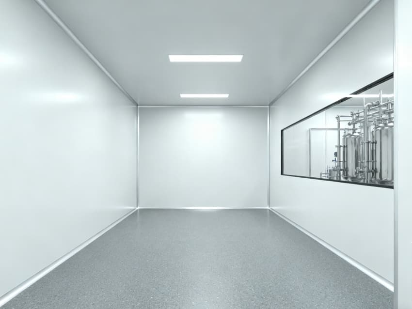 設計在環境適配性上針對性突出:地面采用灰色耐濕熱環氧自流平材質,其特殊配方經121℃高溫滅菌循環測試后硬度無衰減,表面粗糙度Ra≤0.8μm,配合無縫拼接工藝形成連續抗菌屏障,有效阻斷芽孢桿菌等頑固微生物的滋生路徑;四周白色抗菌墻壁選用食品級納米涂層,該涂層經第三方檢測機構驗證,對金黃色葡萄球菌抑菌率達99.9%,配合R≥50mm的圓弧墻角與全密封模塊化吊頂,徹底消除傳統直角結構的積塵隱患。車間頂部集成三級過濾生物安全型層流系統,通過初效、中效、高效過濾器的梯度攔截,配合FFU風機過濾單元實現垂直單向流,可穩定維持ISO7級(萬級)潔凈度,局部配置百級層流罩形成隔離操作區,確保關鍵工序在無菌環境下進行。此外,墻面還預埋了智能溫濕度傳感器陣列,通過物聯網系統實時監控并調節溫濕度參數,為發酵菌種提供最適宜的生長環境。