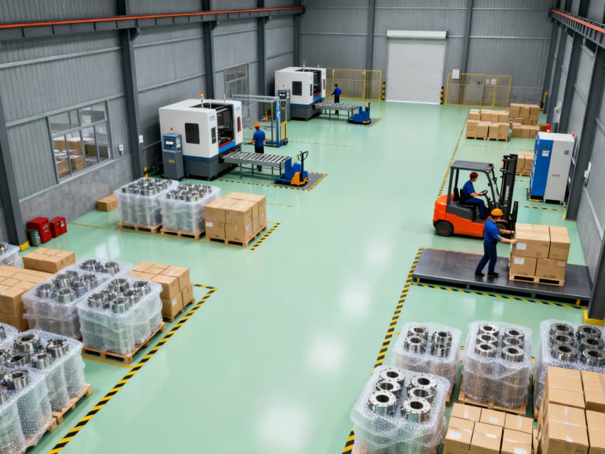全車間統(tǒng)一預(yù)留標(biāo)準(zhǔn)化電源接口、壓縮空氣管路及 coolant 回收通道,層高5米適配各類大型CNC設(shè)備安裝調(diào)試。地面隱形標(biāo)識(shí)清晰劃分加工區(qū)、通道區(qū)及安全區(qū)域,墻面張貼設(shè)備操作規(guī)范預(yù)留位。整體設(shè)計(jì)兼顧實(shí)用性與安全性,為精密CNC加工提供穩(wěn)定、高效的生產(chǎn)環(huán)境,助力保障零件加工精度與生產(chǎn)效率。
