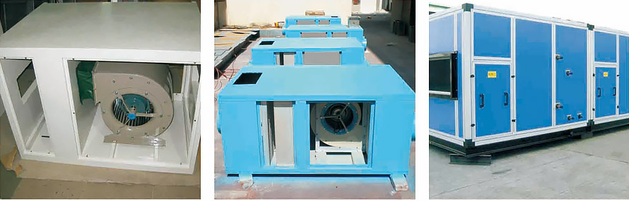 機(jī)組采用模塊式結(jié)構(gòu)設(shè)計(jì),具有高度的靈活性,各功能段可按不同場(chǎng)所的要求作任意的多種功能的組合、以滿足各行各業(yè)的空氣調(diào)節(jié)、空氣凈化系統(tǒng)的需求。