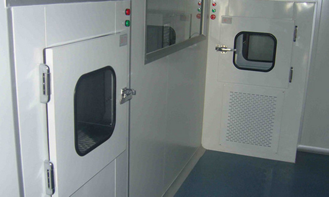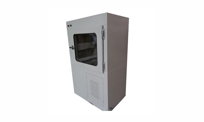 傳遞窗分普通型和風淋型兩種,是潔凈室的一種輔助設備同時兼有氣閘的作用,雙門互鎖,能有效的減少工作人員因運送物品進入潔凈室的次數,在潔凈室傳遞物品時,能隔斷內外氣流貫通的裝置,防止交叉污染最有效的設備。為了減少由于貨物進出所帶來的大量塵埃粒子,風淋傳遞窗經高效過濾器過濾后的潔凈氣流由可旋轉噴嘴從各個方向噴射至貨物上,有效而迅速清除塵埃粒子,清除后的塵埃粒子再由初、高效過濾器過濾后重新循環到風淋區域內。為了達到吹淋的最佳效果,噴嘴出風口風速能達到20s以上。