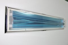 吸頂式不銹鋼直邊凈化燈,邊框采用鏡面不銹鋼制作,底盤采用冷軋鋼板靜電噴塑或采用不銹鋼材料,燈罩采用透明或乳白有機玻璃,配鏡面反射板,燈具線路可采用LED式或電子鎮