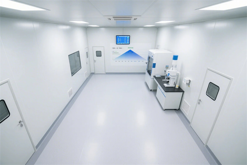 本工程嚴格依據ISO14644-1Class6(千級)潔凈標準及GMP規范要求,采用"科技極簡"設計理念,打造高標準的微生物檢測環境。主體結構采用模塊化潔凈室系統,50mm厚純白醫