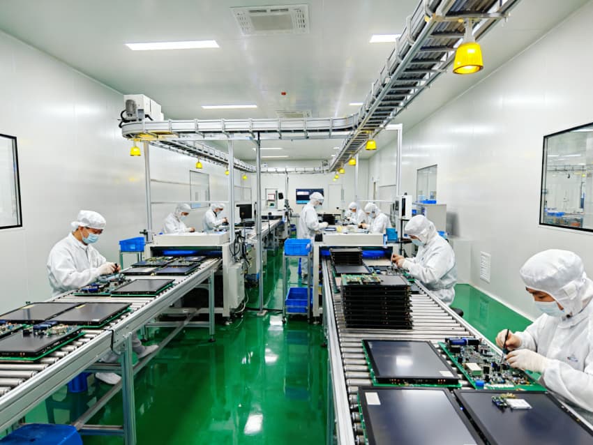 車間整體無多余裝飾,地面隱形標(biāo)識清晰劃分人流、物流通道,避免交叉污染,同時配備預(yù)留式高效送排風(fēng)系統(tǒng)安裝位,可精準(zhǔn)控制室內(nèi)溫濕度與潔凈度等級。簡潔專業(yè)的空間設(shè)計與適配性極強的基礎(chǔ)配置,既滿足顯示器件對潔凈度、防靜電的嚴苛要求,又為后續(xù)生產(chǎn)線搭建與產(chǎn)能升級提供靈活支撐,助力高效合規(guī)生產(chǎn)。
